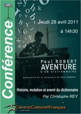 37. Rey, C. (24-28 avril 2011). «Histoire, mutations et avenir du dictionnaire », Cycle de conférences en Algérie, (24 avril : Université de Mostaganem; 24 avril : Centre Culturel Français d'Oran; 25 Avril : Université de Tlemcen; 26 avril : Université d'Alger; 27 avril : Université de Constantine; 28 avril : Centre Culturel Français d'Annaba [Affiche de l'évènement]).