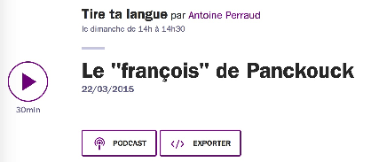 - 2014 - Émission Tire ta langue de France Culture consacrée au Grand Vocabulaire François de Charles-Joseph Panckoucke à la suite de la parution de notre ouvrage : Rey, C. (2014). Le Grand Vocabulaire François (1767-1774) de Charles-Joseph Panckoucke., Collection Lexica, mots et dictionnaires, n° 27, Honoré Champion.